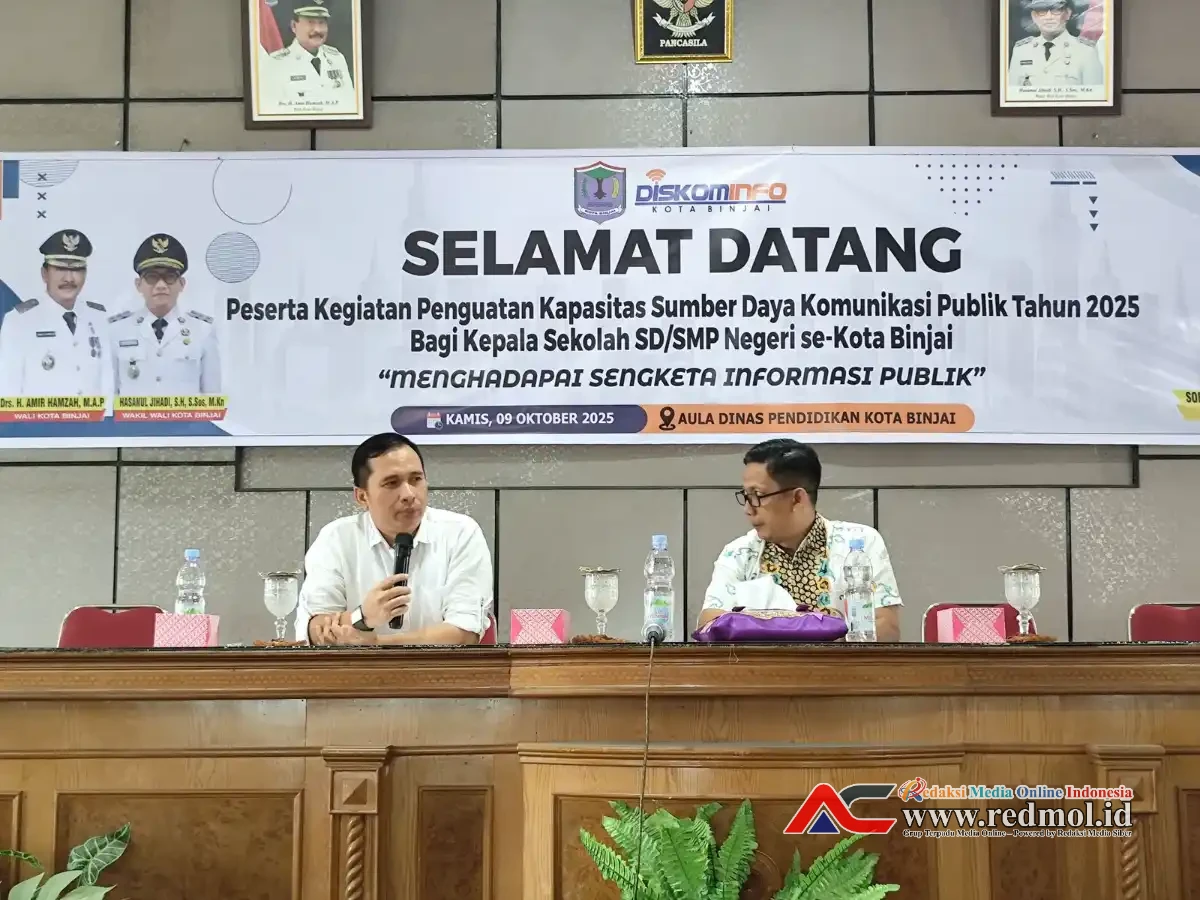 RedMOLBinjai.id | Binjai – Pemerintah Kota Binjai melalui Dinas Komunikasi dan Informatika (Diskominfo) menggelar kegiatan Penguatan Kapasitas Sumber Daya Komunikasi Publik bagi para Kepala Sekolah SD dan SMP Negeri se-Kota Binjai. Kegiatan yang berlangsung di Aula Dinas Pendidikan Kota Binjai pada Kamis (9/10) ini bertujuan untuk memperkuat pemahaman tentang pentingnya keterbukaan informasi publik di lingkungan pendidikan dasar.