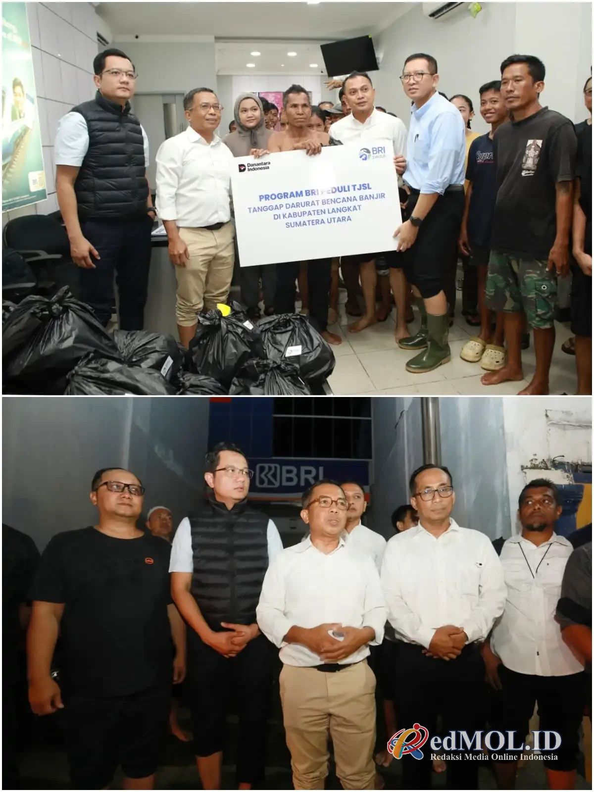 Selain menyalurkan bantuan, Solichin juga meninjau BRI Kantor Cabang Pembantu Tanjung Pura, yang ikut terdampak banjir, untuk memastikan layanan perbankan segera pulih.