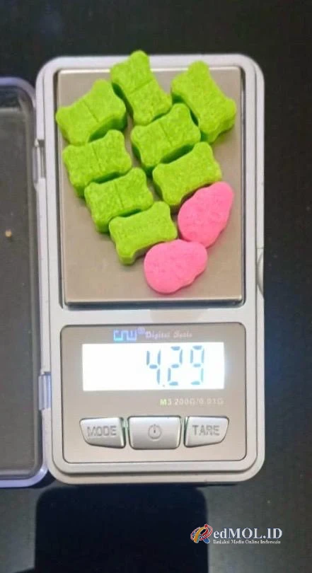 Dari tangan MR, polisi menyita 10 butir pil ekstasi dengan berat netto 4,29 gram, terdiri dari 8 butir warna hijau dan 2 butir warna pink. Polisi juga mengamankan sepeda motor Honda Beat tanpa nopol serta sebuah amplop putih yang diduga berkaitan dengan transaksi narkoba.