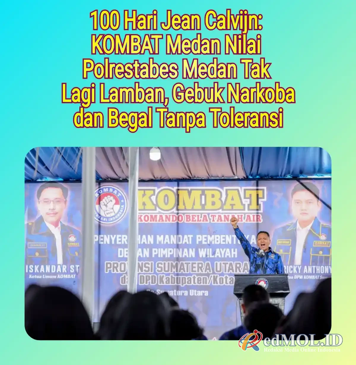 RedMOLBINJAI.ID | Medan – Seratus hari pertama kepemimpinan Kapolrestabes Medan Kombes Pol. Jean Calvijn Simanjuntak tak berlalu tanpa catatan. Di tengah sorotan publik terhadap maraknya narkoba dan kejahatan jalanan, kinerja Polrestabes Medan justru mendapat apresiasi terbuka dari Komando Bela Tanah Air (KOMBAT) Kota Medan.