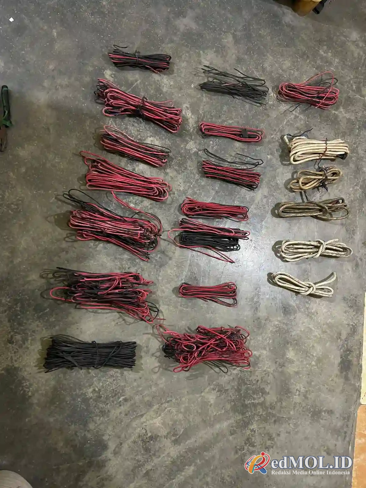 Dari tangan tersangka, polisi mengamankan sejumlah barang bukti berupa 20 gulung kabel listrik tembaga, 10 buah mancis, 1 buah tang, 1 buah gunting, 1 buah obeng, 1 buah pisau kater, serta 1 buah tas.