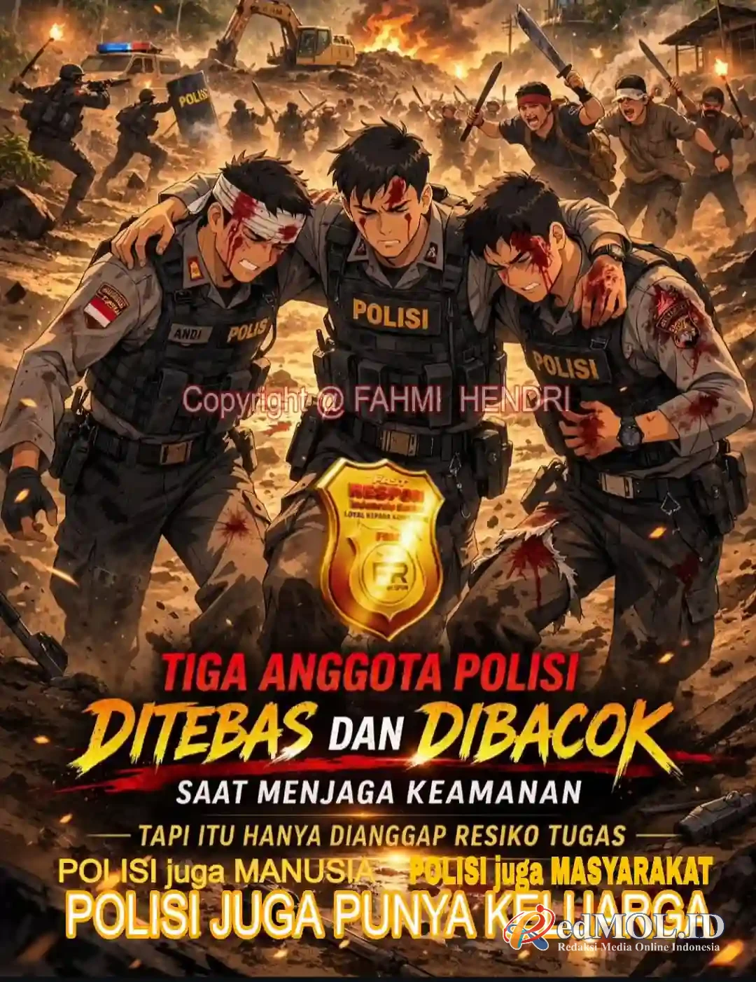 “Personel kepolisian juga manusia biasa. Mereka adalah anak dari orang tua, suami bagi istri, dan ayah bagi anak-anaknya yang setiap hari menunggu mereka pulang dari tugas dengan selamat,” ungkap Fahmi.